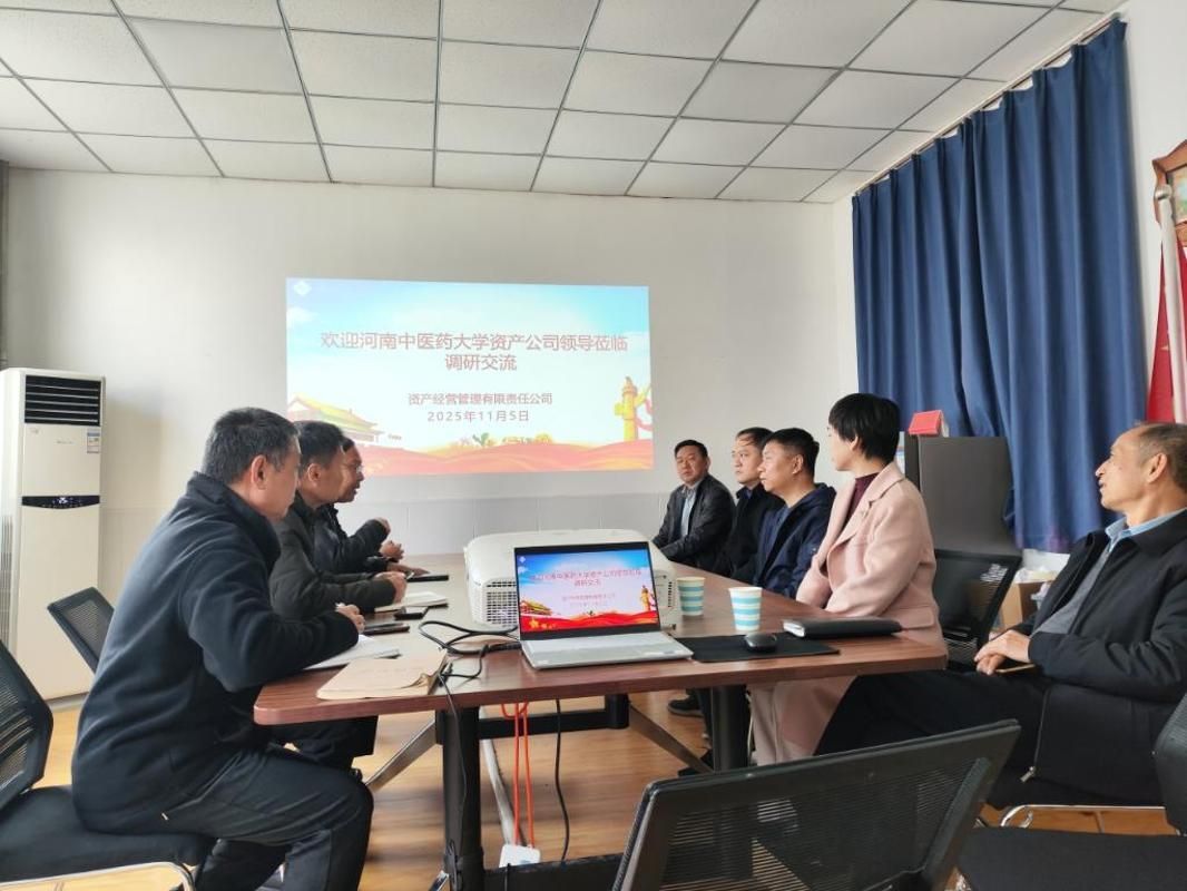 11月5日,河南中医药大学校产经营管理公司总经理徐华明及审计处、校友办等一行5人莅临我校资产公司进行调研交流。资产公司党政领导以及河南科院印象文化传播有限公司负责人参加调研交流。
